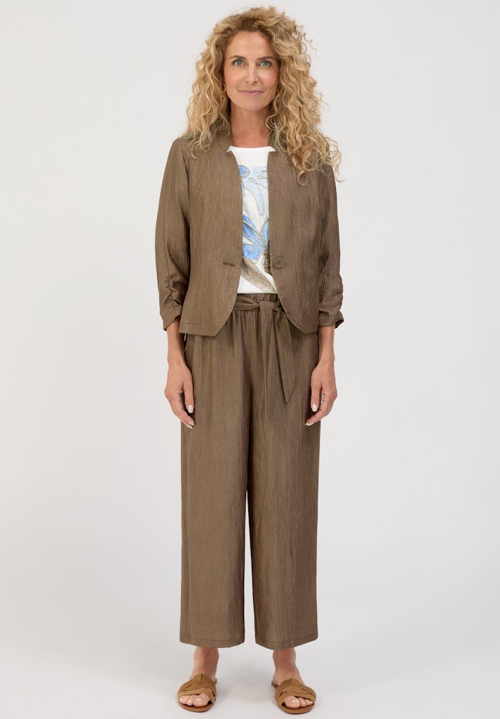 Blazer Un Bouton Manches Trois Quarts Froncée Unie Irisée
