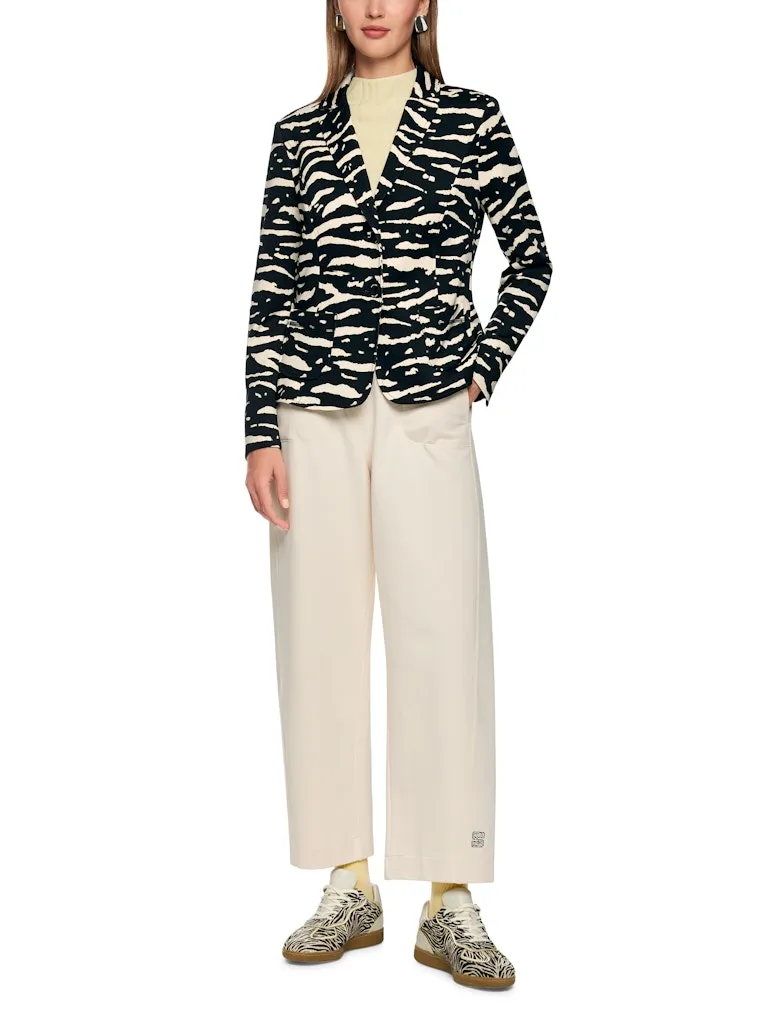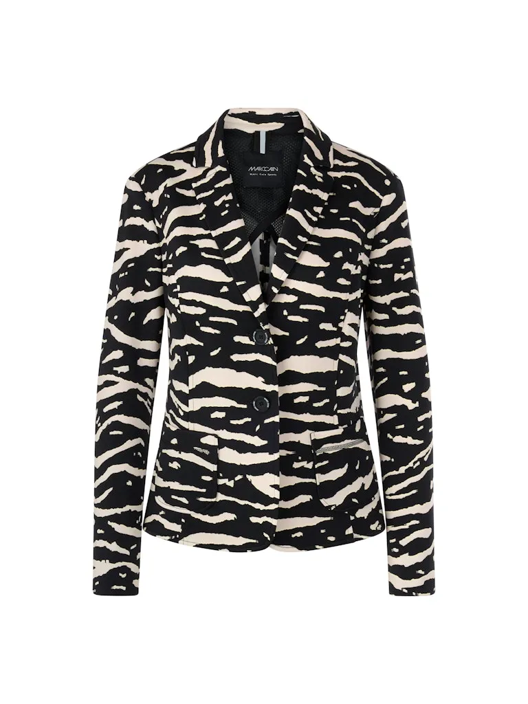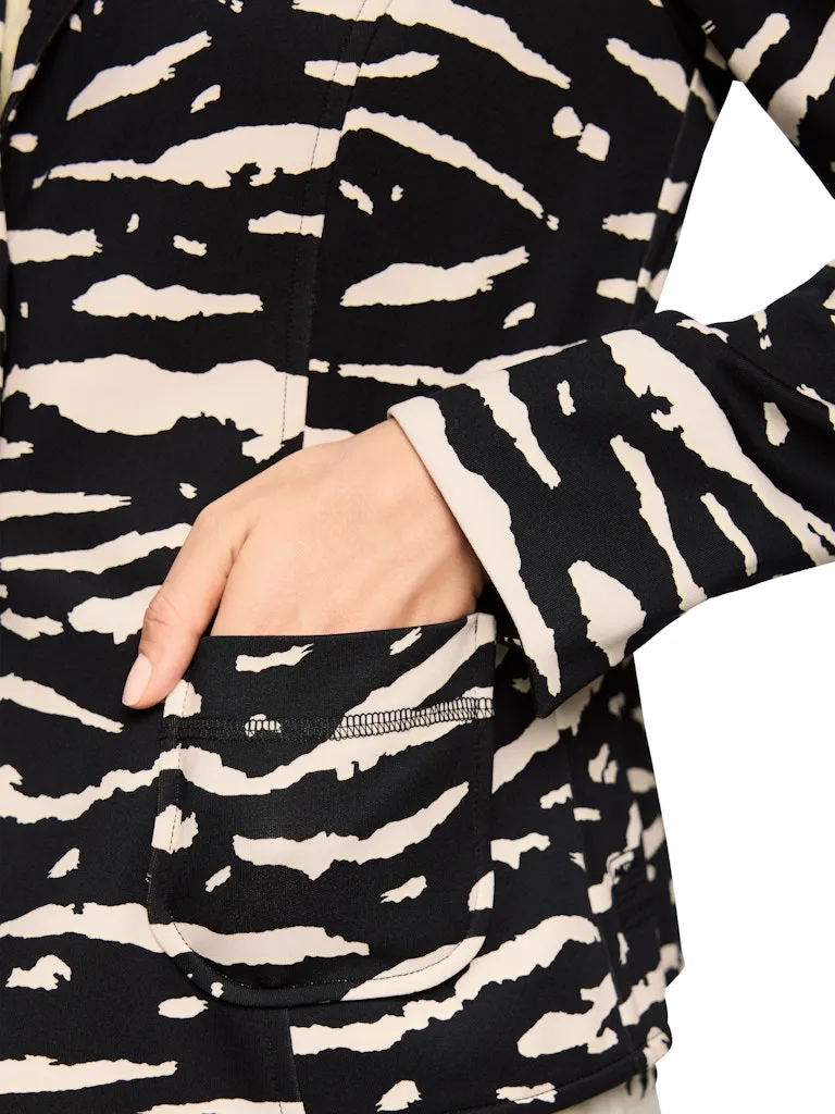Blazer femme à imprimé animalier, coupe droite et col à revers. En jersey scuba doux, avec boutonnage simple et poches plaquées. Confortable et moderne, non doublé.