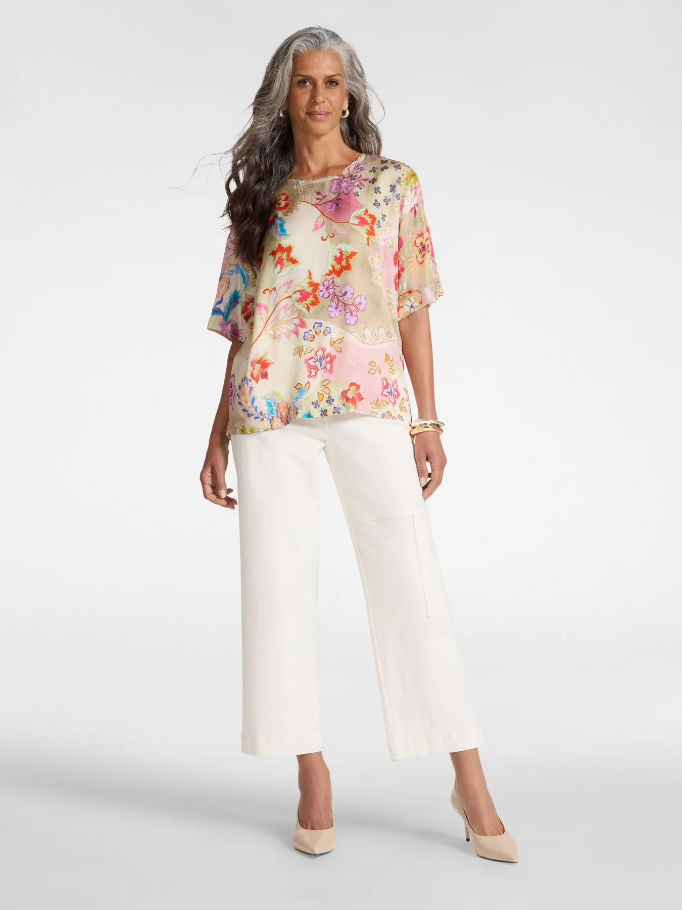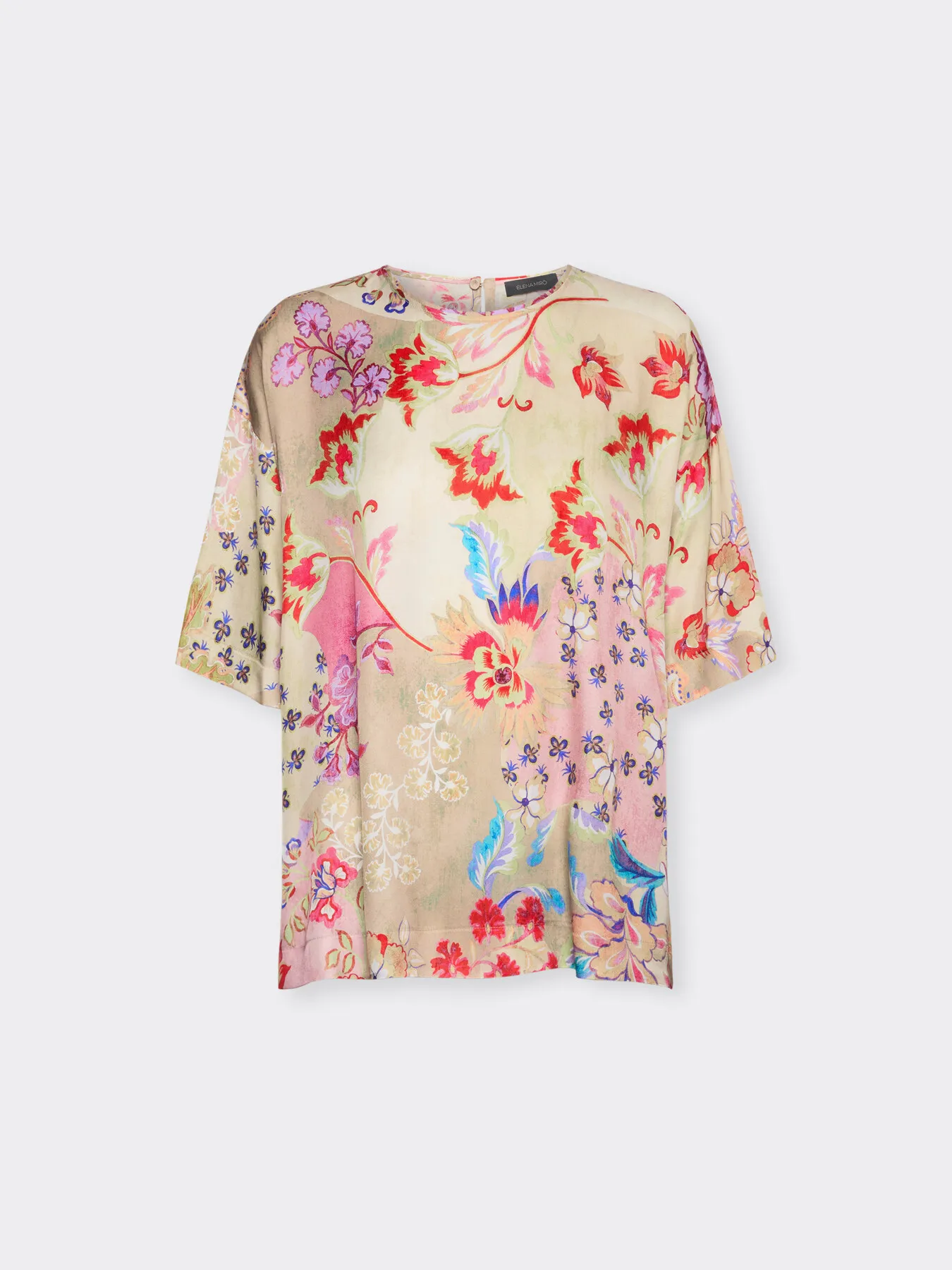Blouse Col Rond Manches Coudes Fluide Imprimé