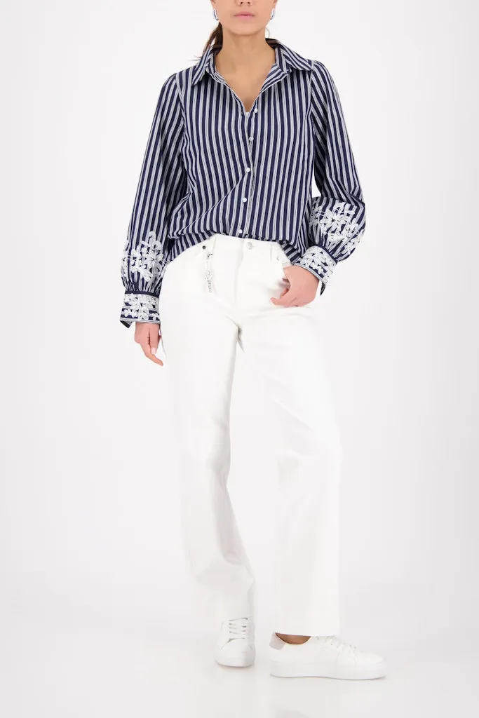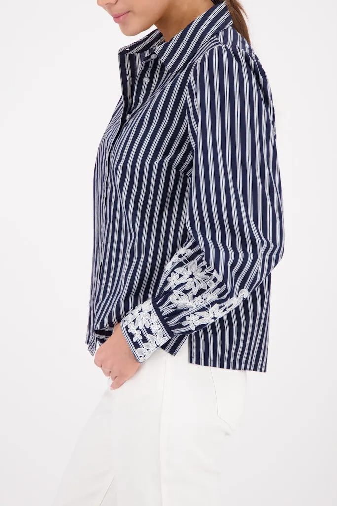Chemise Manches Longues Rayée Brodée Bas Des Manches Coton