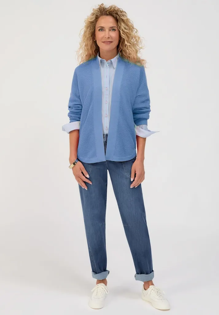 Cardigan à coupe droite et ample, en maille fine au mélange coton de qualité. Sans fermeture, avec décolleté en V, manches longues larges tombantes et ourlet arrondi. Une pièce polyvalente et confortable, idéale pour accompagner la saison printemps/été.