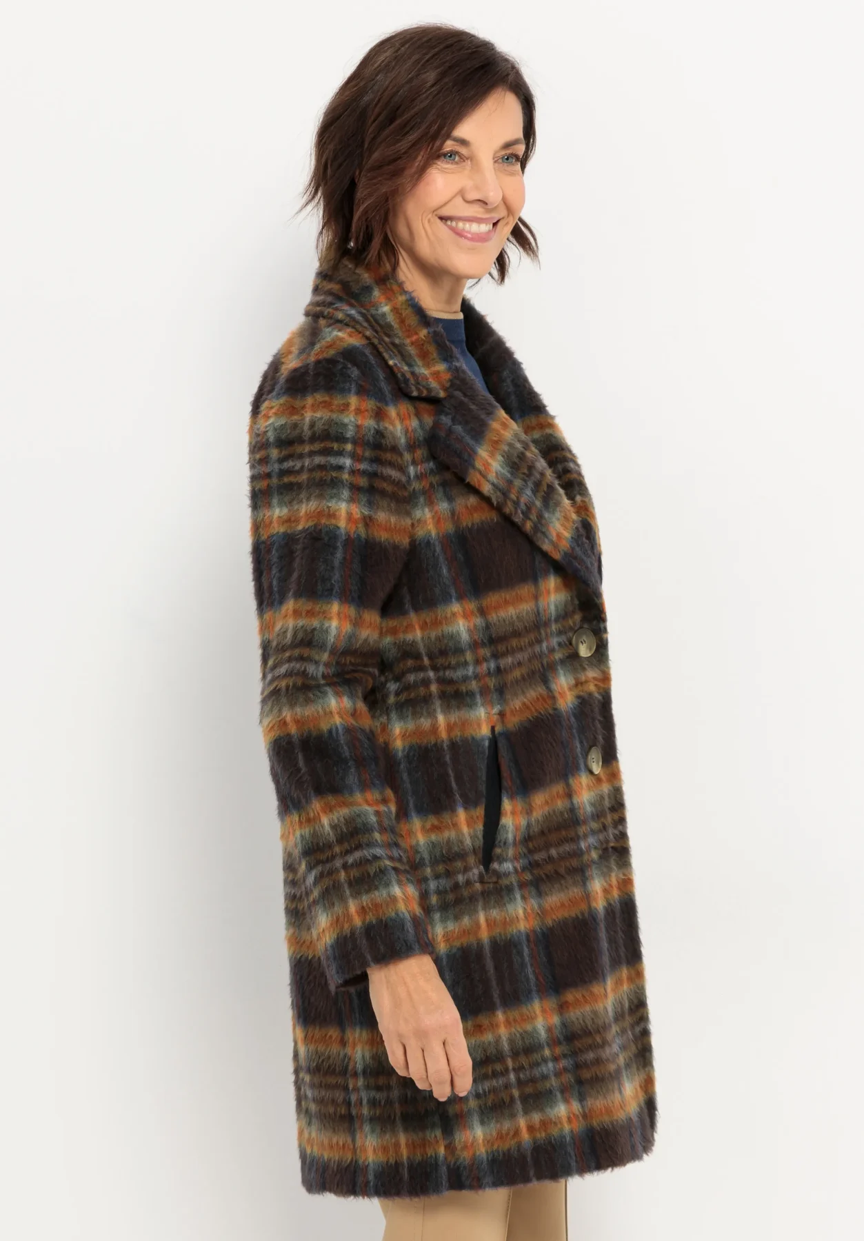 Manteau Mi-long Manches Longues Imprimé Carreaux Ecossais