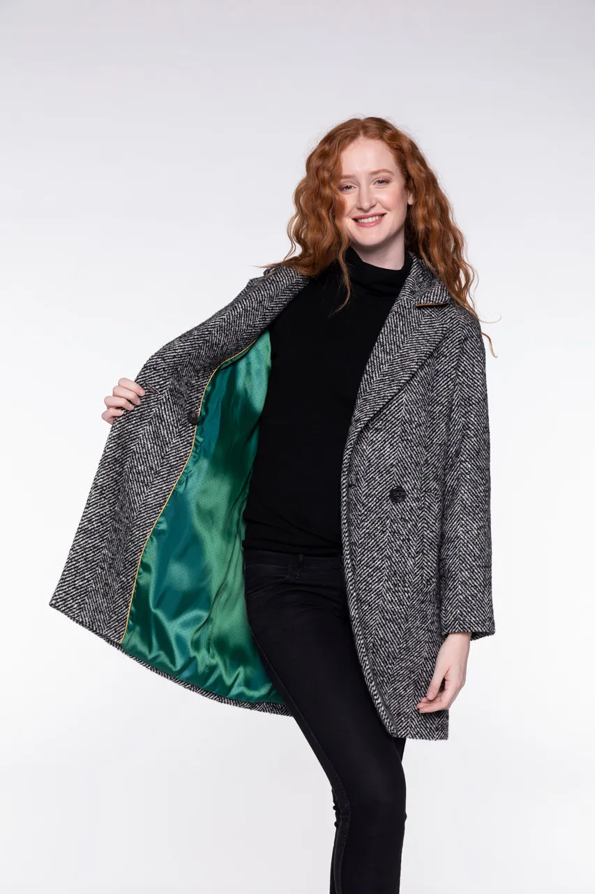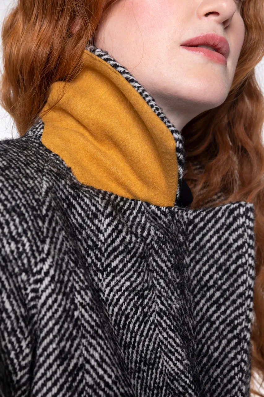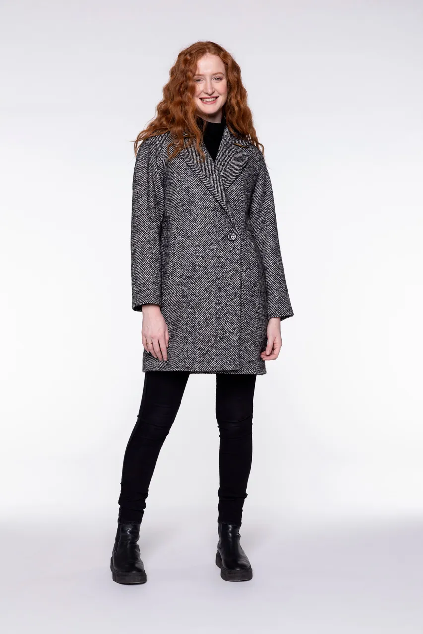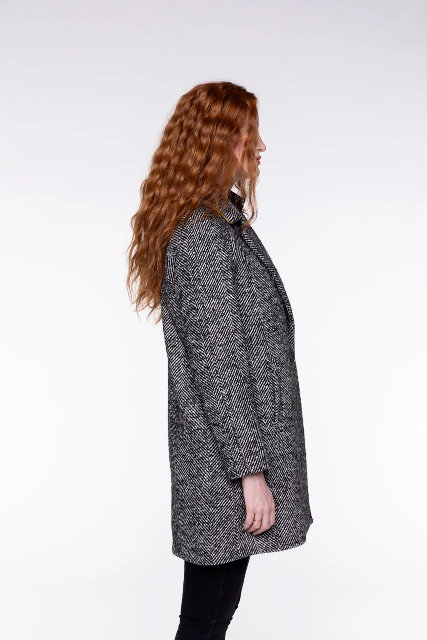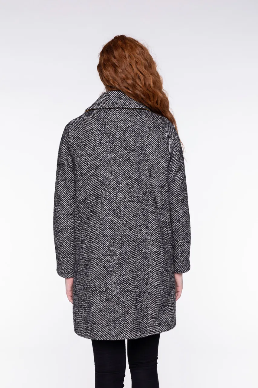 Manteau Mi-long Sans Capuche Manches Longues Portefeuille Deux Poches Françaises Un Bouton Chevrons