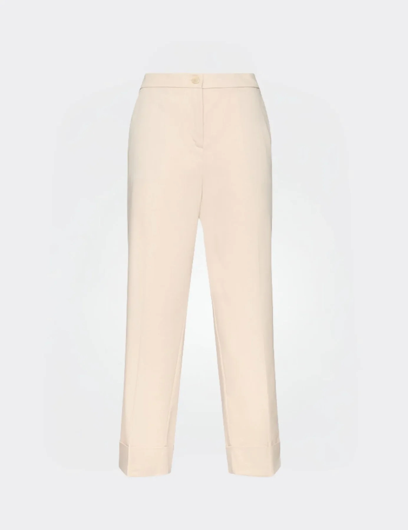 Pantalon Sept-huitième Taille Moyenne Bas Revers Droit Deux Poches Françaises Uni