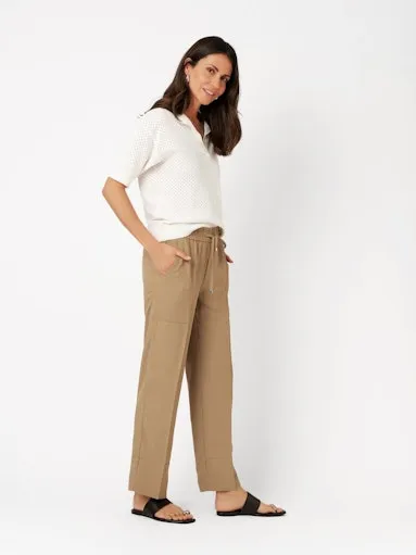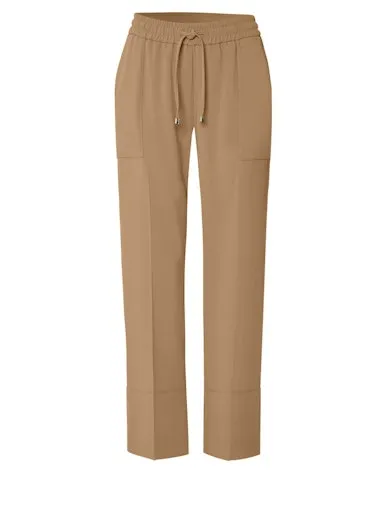 Pantalon Sept-huitième Taille Moyenne Elastique Cordon Deux Poches Plaquées Uni Fluide