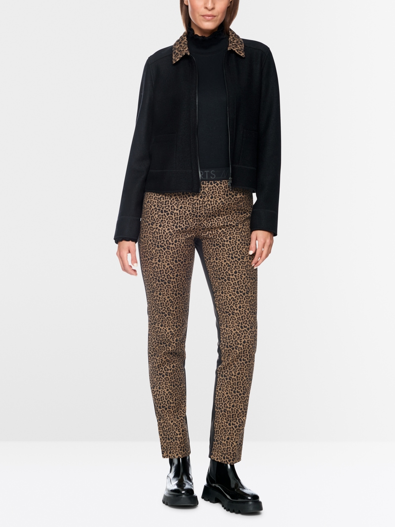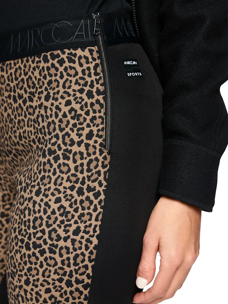Pantalon Sept-Huitième Taille Moyenne Elastique Bimatières Imprimé Léopard