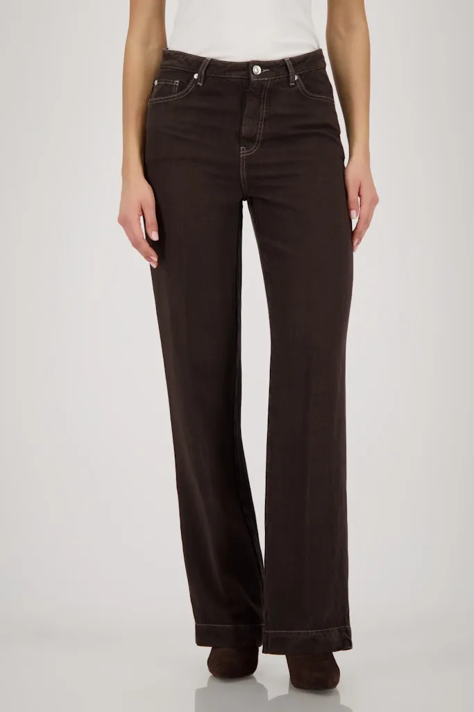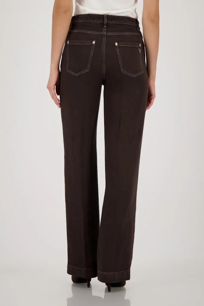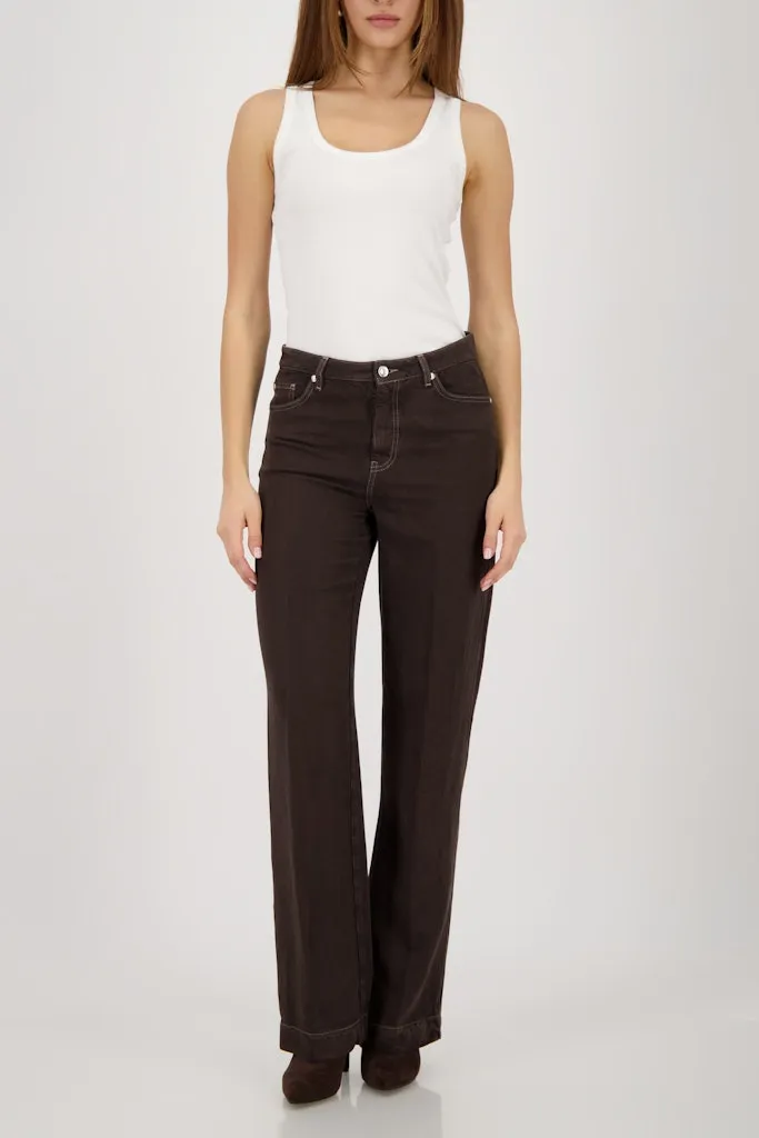 Pantalon Long Taille Moyenne Quatre Poches Wide Legs Uni