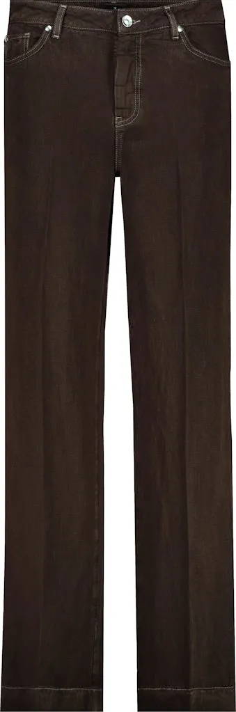 Pantalon long coupe droite confectionné dans un mélange de viscose et lin au tombé léger et naturel. Les coutures contrastées et le pli marqué structurent la silhouette, tandis que les poches dévant et les poches arrière à rabat apportent une touche fonctionnelle et raffinée. Une pièce chic et contemporaine, idéale au quotidien comme au bureau.