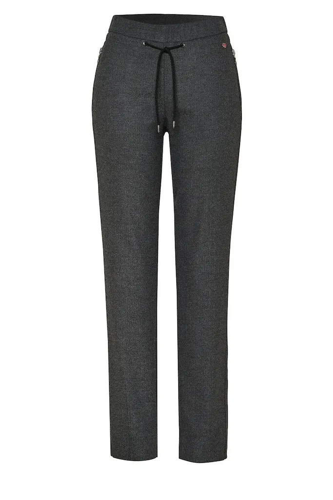 Pantalon Long Taille Moyenne Elastique Cordons Chiné Droit