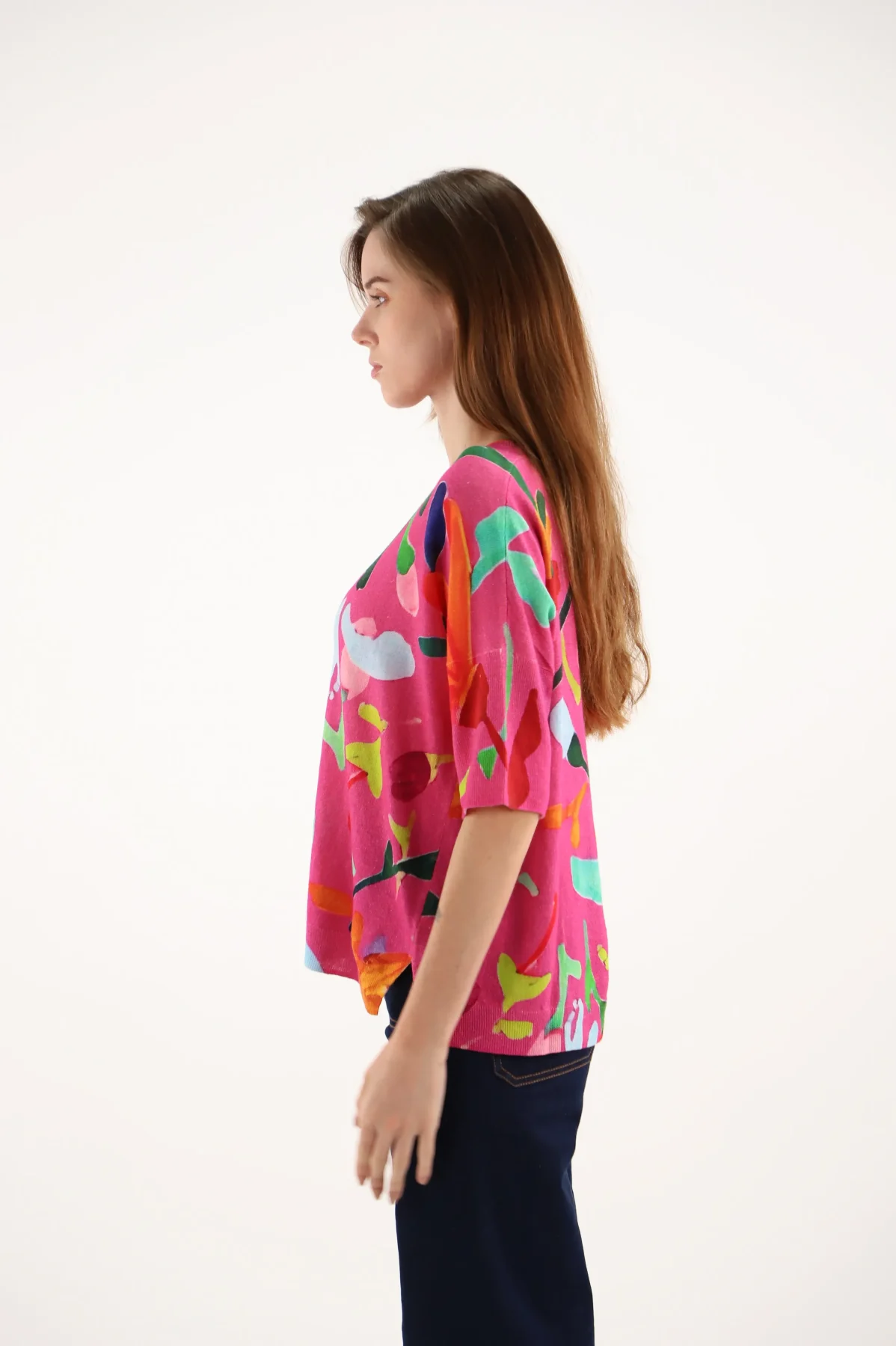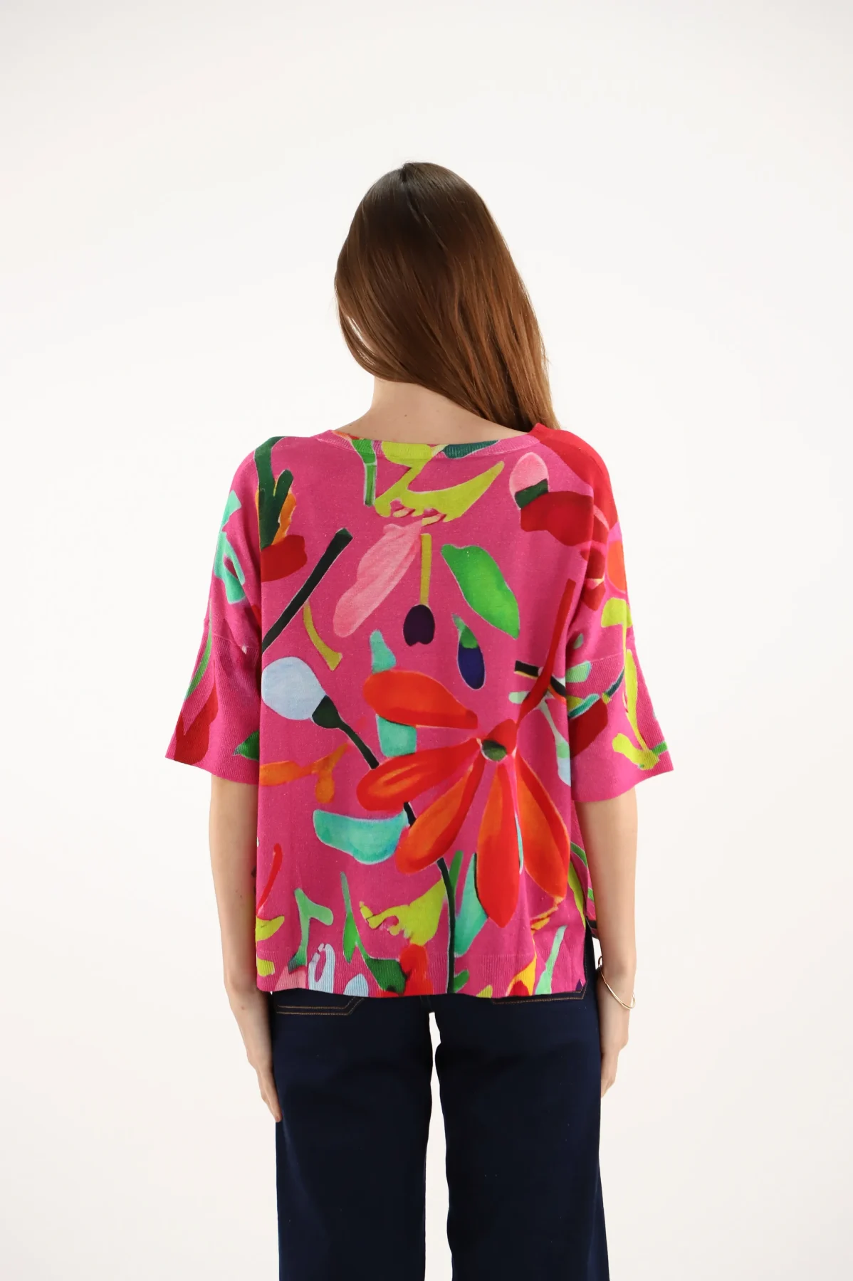 Pull Col V Imprimé Peinture Florale