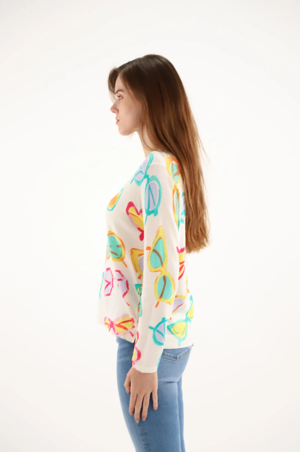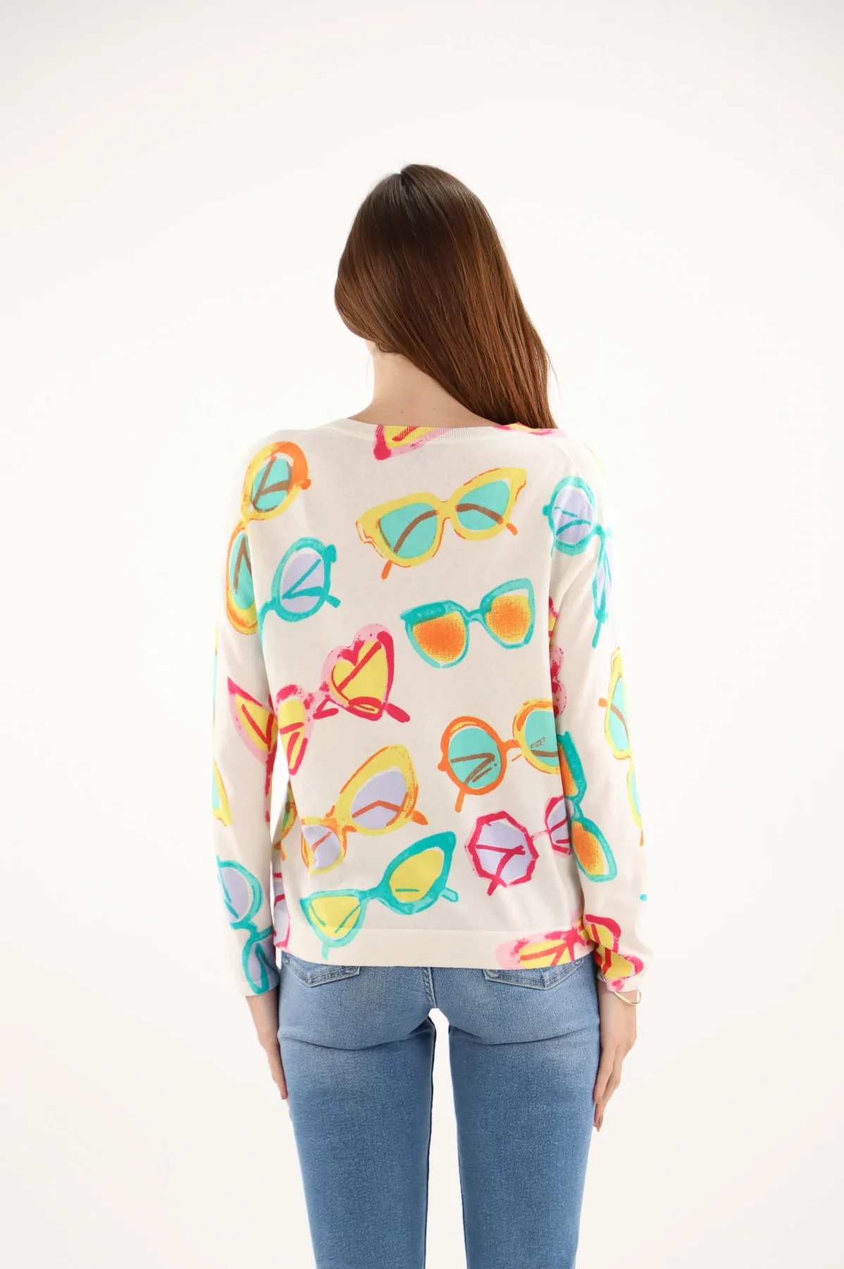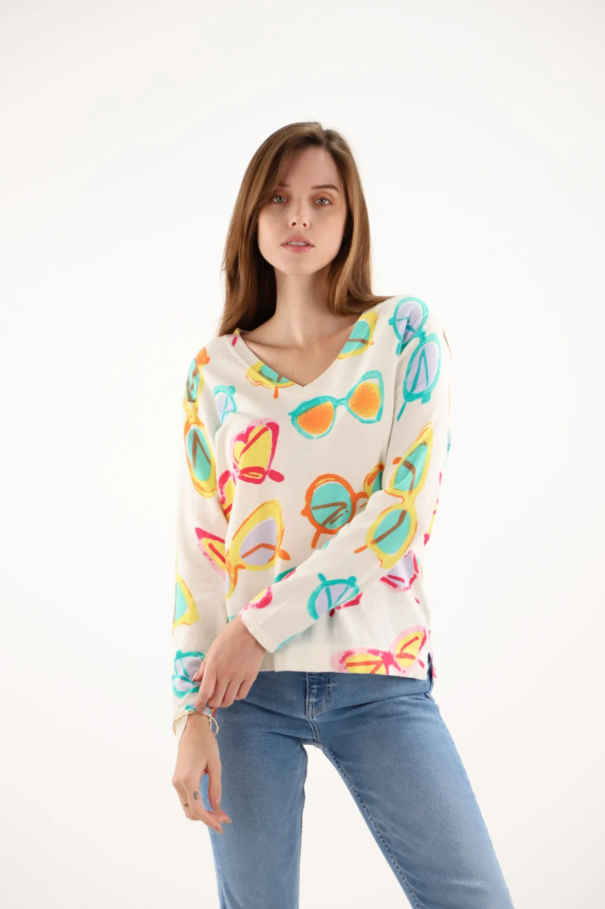 Pull Col V Manches Longues Imprimé Lunettes