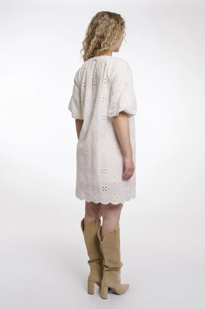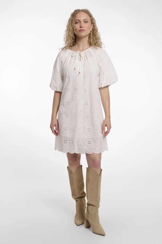 Robe Longueur Genoux Col V Manches Coudes Volumineuses Broderie Coton