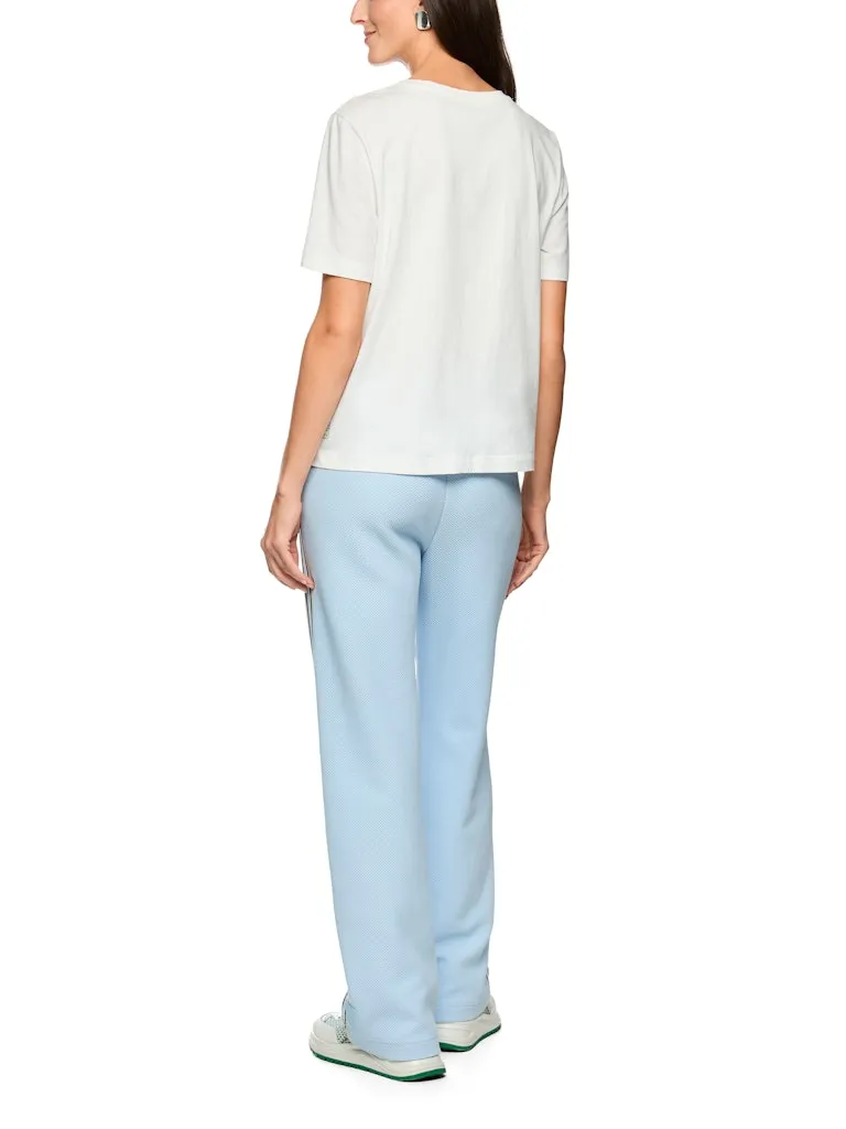 Ce T-shirt en coton adopte une coupe ample avec une silhouette décontractée et contemporaine. Son motif placé accrocheur est sublimé par de broderies transparentes en paillettes, apportant relief et éclat subtil. Doté d’un col rond classique et de manches courtes, ce t-shirt se porte facilement avec un jean, un pantalon fluide ou une jupe pour un look casual affirmé.