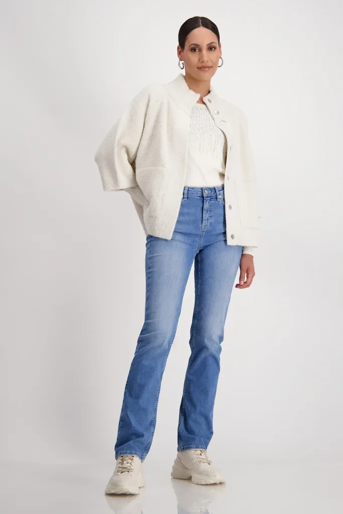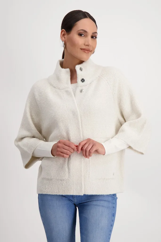 Veste Col Montant Manches Trois-Quarts Pression Deux Poches Uni