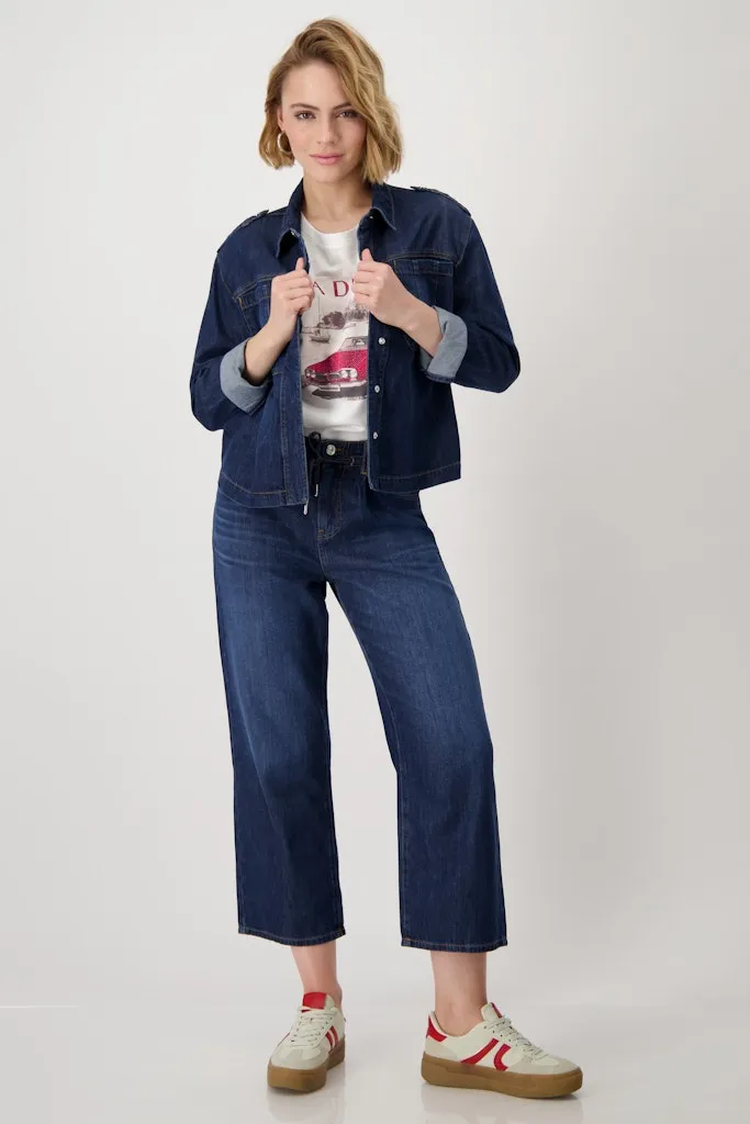 Veste Jean Manches Longues Pressions Deux Poches Unie